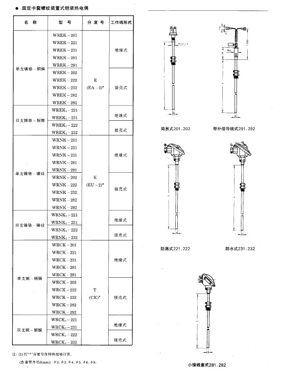 (3)直徑Φ2mm鎧裝熱電偶須和本廠協(xié)商訂貨。