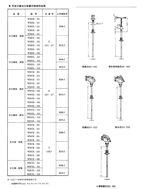 (3)直徑Φ2mm鎧裝熱電偶須和本廠協(xié)商訂貨。