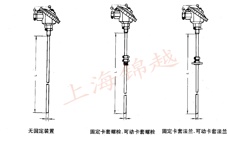 注:1)保護(hù)管材料和固定裝置材料:1Cr18Ni9Ti不銹鋼。