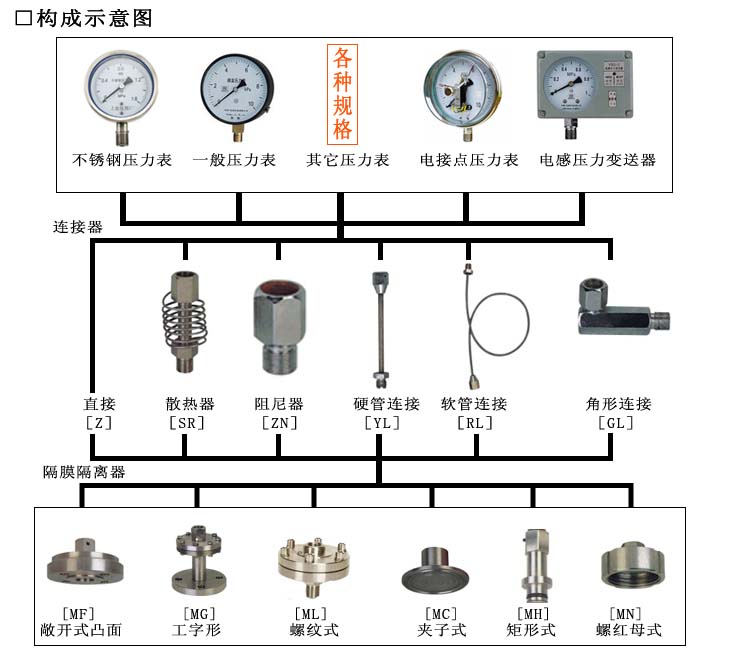 為使通用型壓力表能適用于測量強腐蝕、高溫、高粘度、易結晶、易凝固、有固體浮游物的介質(zhì)壓力以及須***避免測量介質(zhì)直接進入通用型壓力儀表和防止沉淀物積聚且易清洗的場合,應須***采用由隔膜隔離器與通用型壓力儀表組成一個系統(tǒng)的隔膜表。